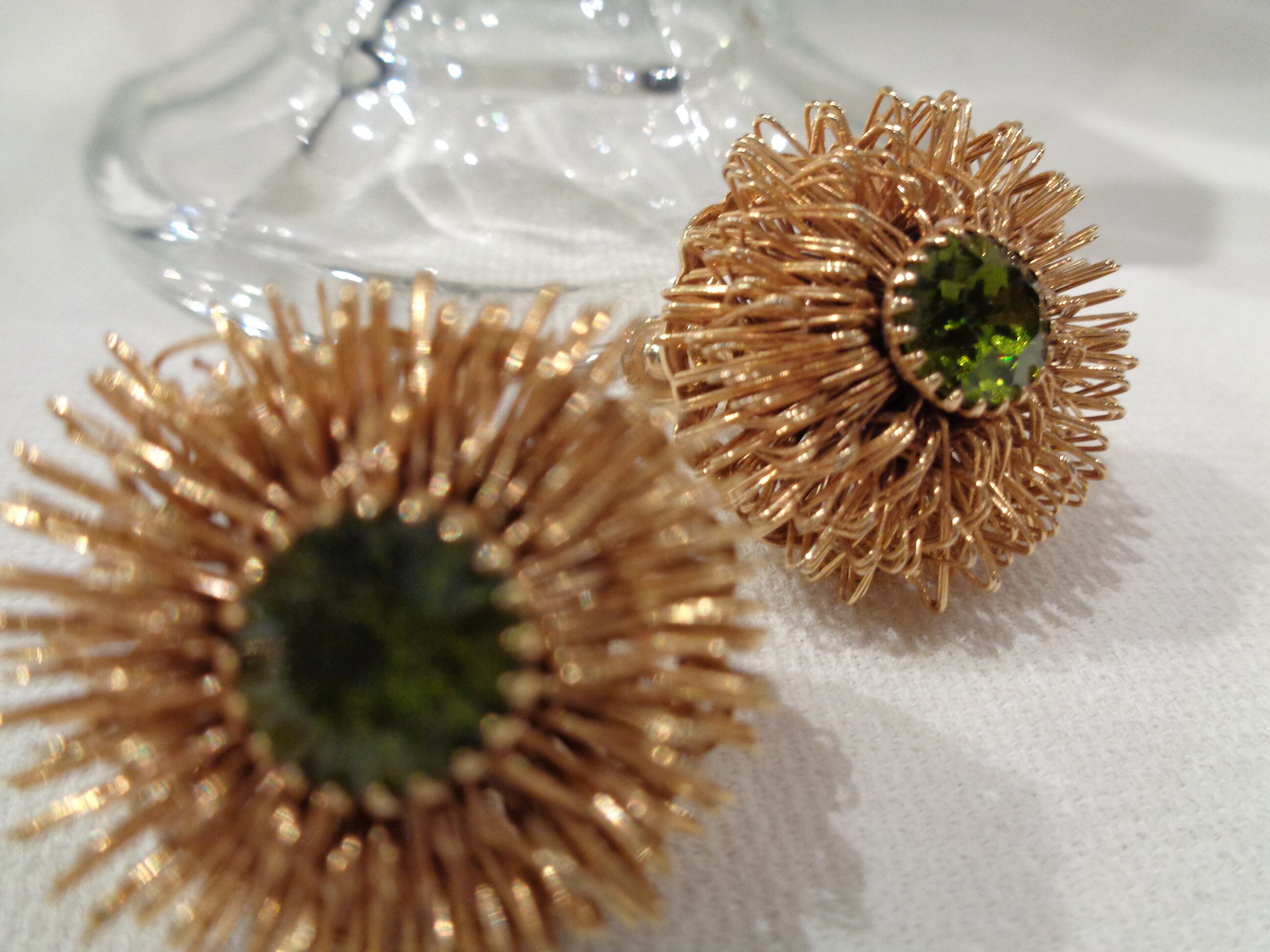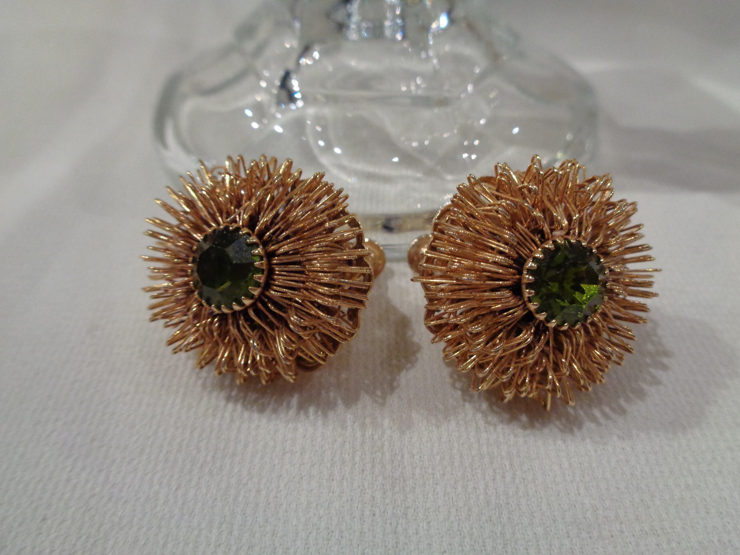 ライトグリーンのビジューとゴールドが華やかなイヤリングです。