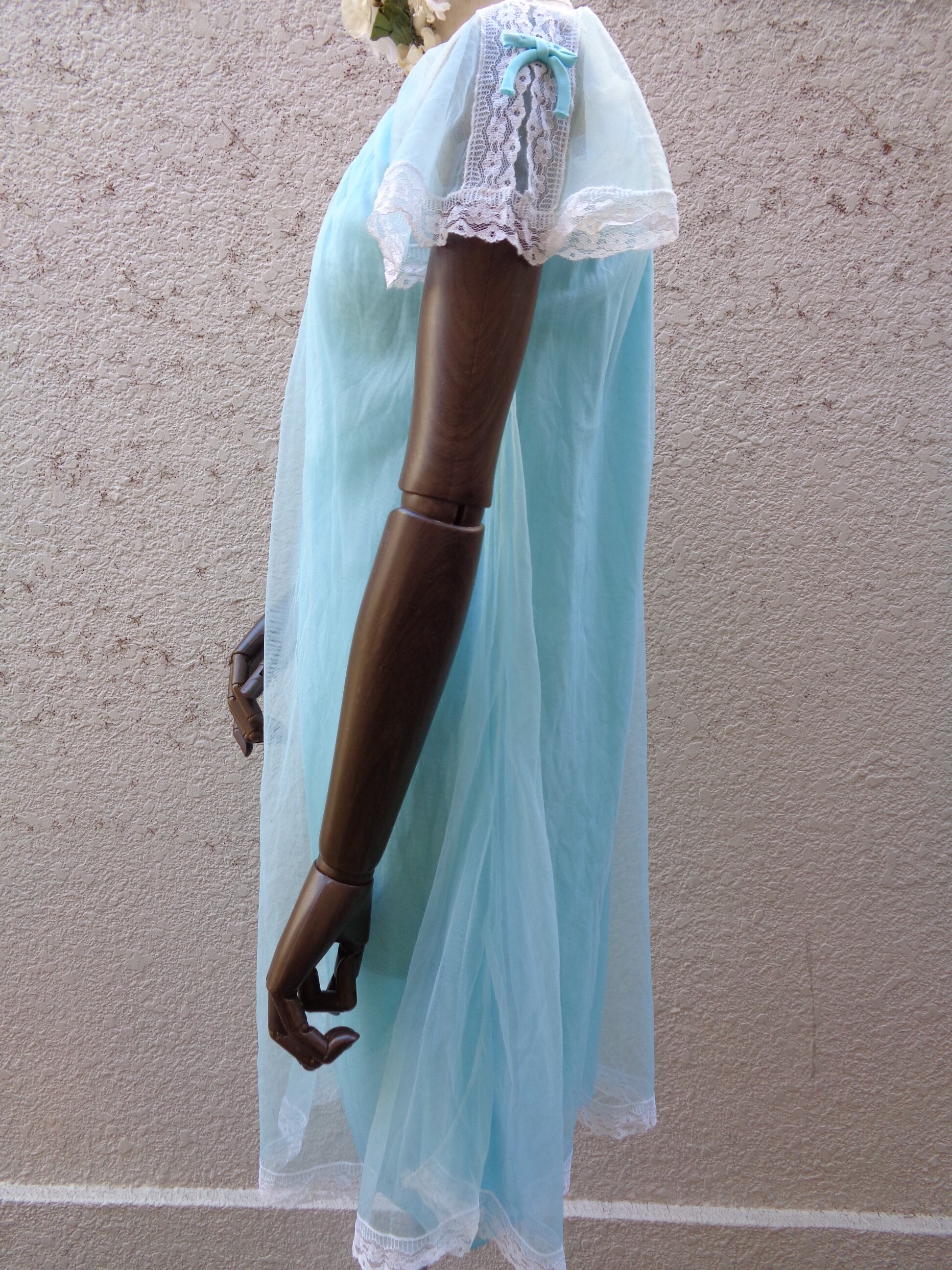 リボンとレースがあしらわれたランジェリードレスです。鮮やかなライトブルーの色味が爽やかな印象です。