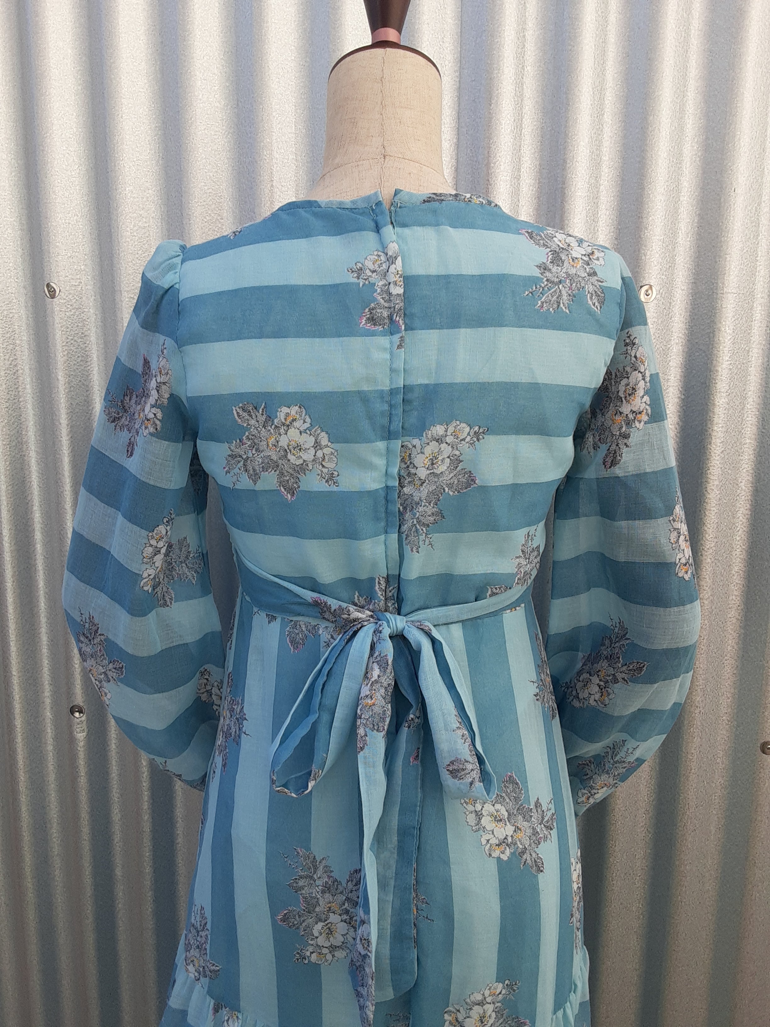 シフォンのように柔らかい素材感の、小花が可愛らしいビンテージロングスリーブワンピースです。